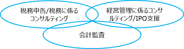 | 1.経営管理に係るアドバイザリー | 2.株式上場支援サービス | 3.税務・会計サービス | 4.会計監査 |